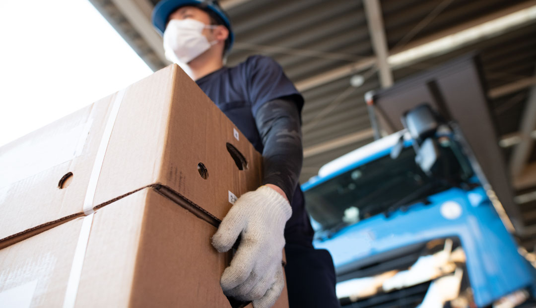 段ボールの積み降ろし作業の